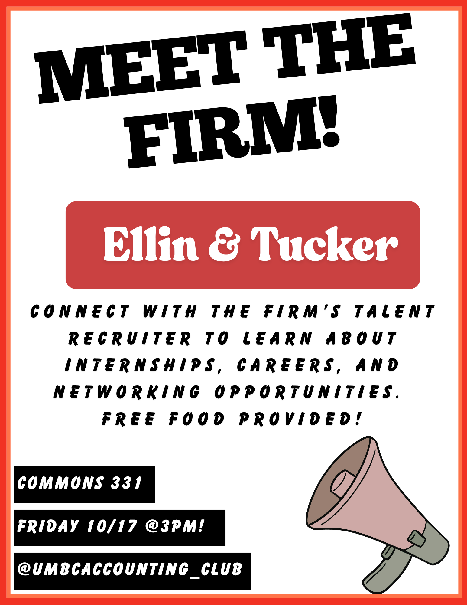 Join us for an exciting opportunity to connect with Ellin & Tucker, a leading accounting and business consulting firm. During this session, you'll meet the firm's Talent Recruiter, who will share valuable insights about the company culture, available internship programs, and what recruiters look for in aspiring accounting professionals.