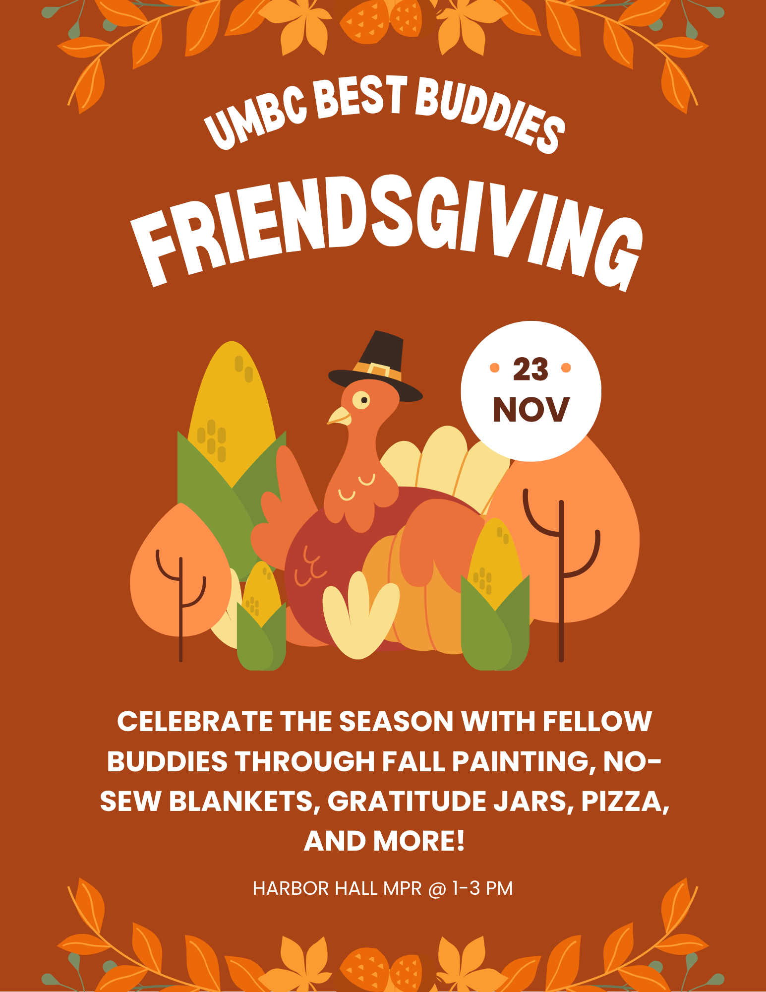 Join UMBC Best Buddies this Sunday, November 23 from 1-3 PM in the Harbor Hall MPR for a relaxing afternoon of canvas painting, gratitude jars, no-sew blankets, and—yes—FREE PIZZA! Bring a buddy and your creative spark!