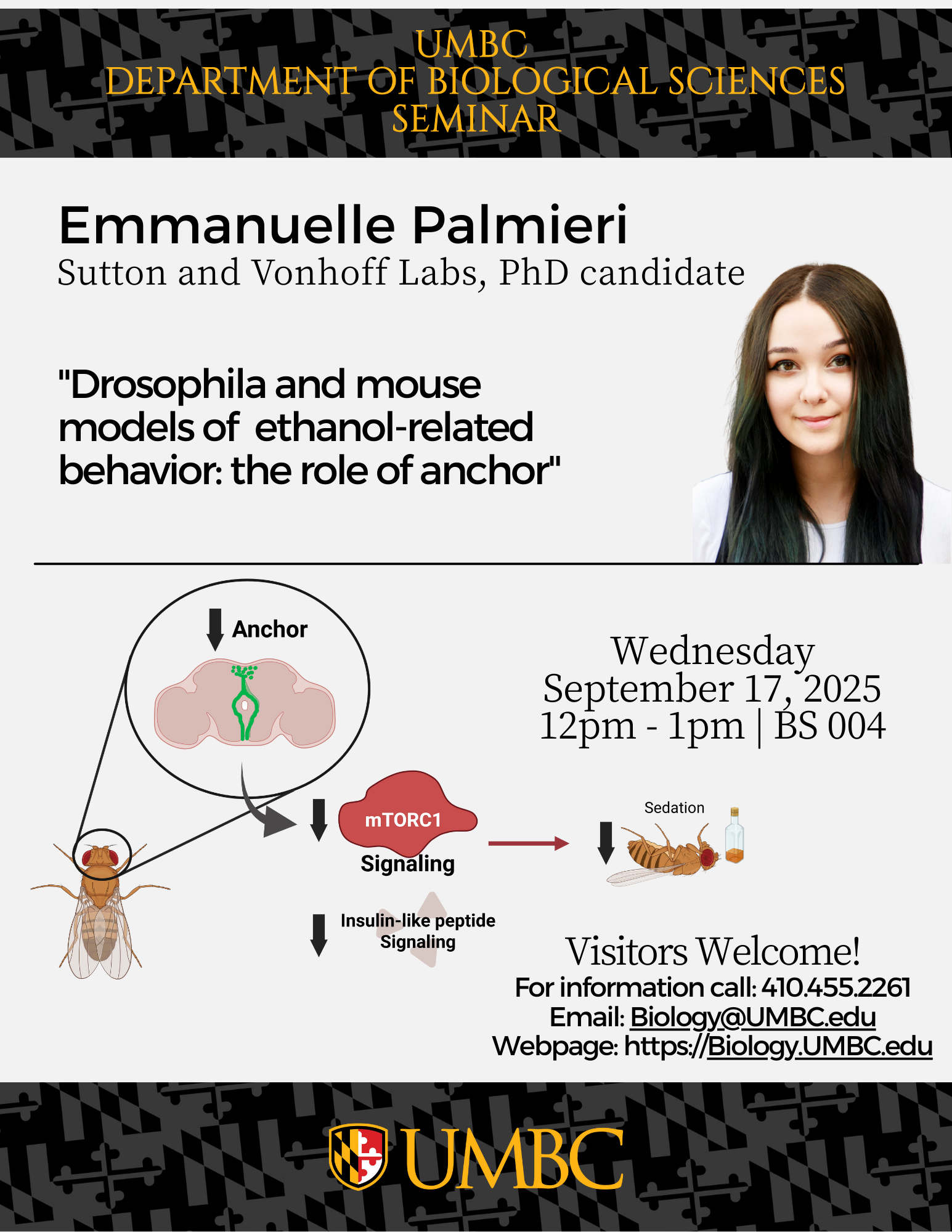 Emmanuelle will be presenting, “Drosophila and mouse models of ethanol-related behavior: the role of anchor”.