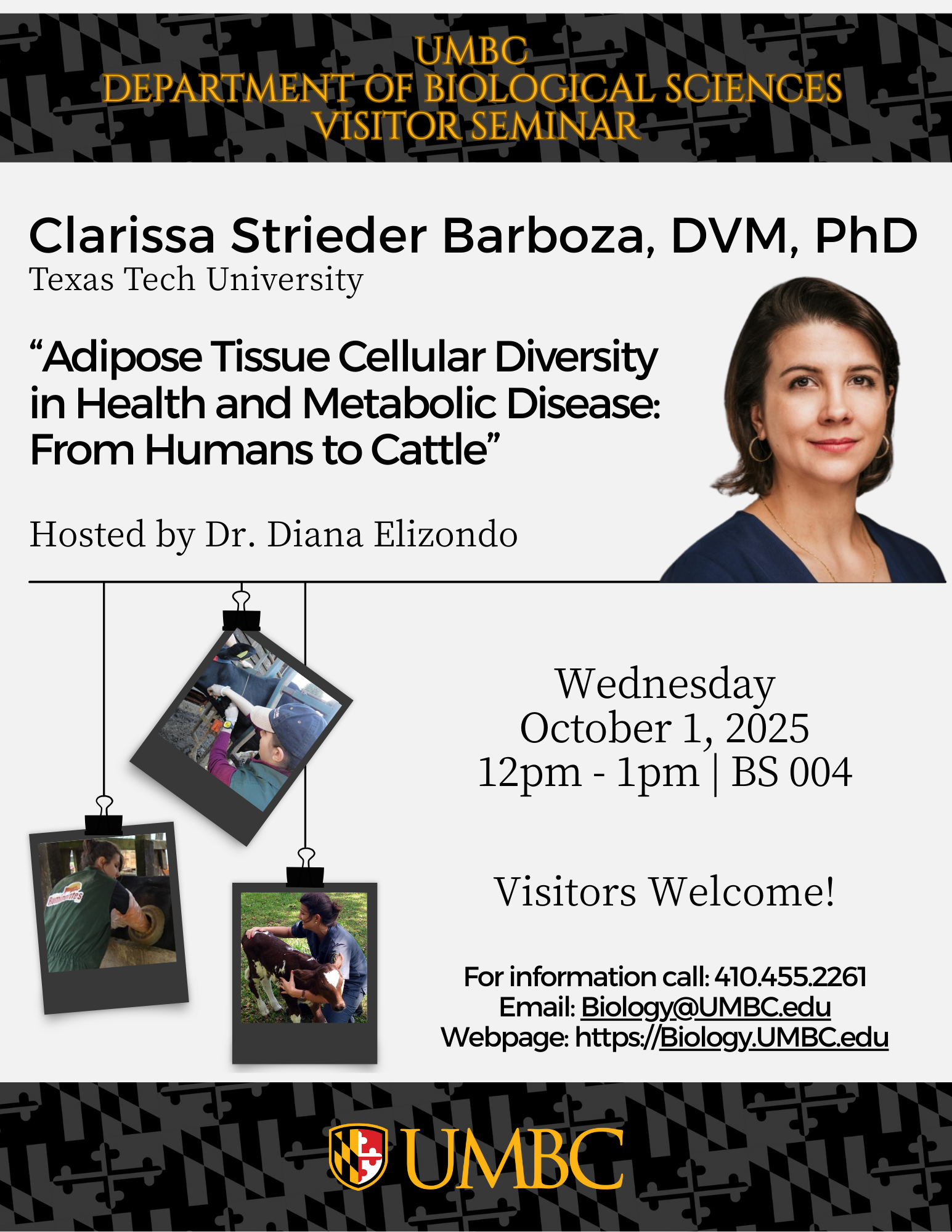 Please join the Department of Biological Sciences, and host Dr. Diana Elizondo in BS 004 for a seminar given by Dr. Clarissa Strieder Barboza, DVM, PhD from Texas Tech University.