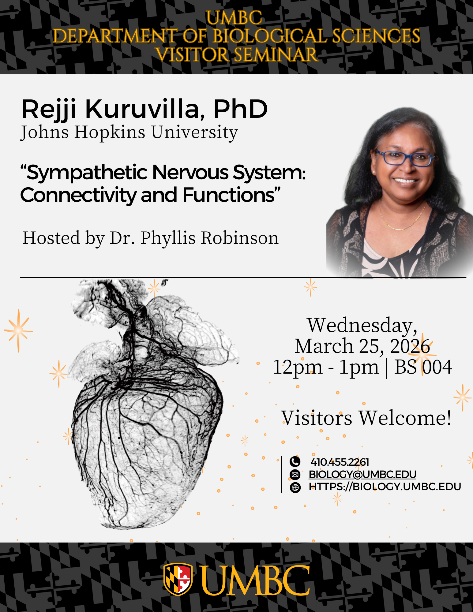 Please join the Department of Biological Sciences along with host Dr. Phyllis Robinson, for a seminar given by Rejji Kuruvilla, PhD, from Johns Hopkins University.