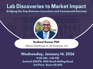 EXCLUSIVELY for UMBC Faculty & the bwtech community! Join us to explore and learn about: The Commercialization Journey – Lab to market: invention disclosure, IP strategy, regulatory...