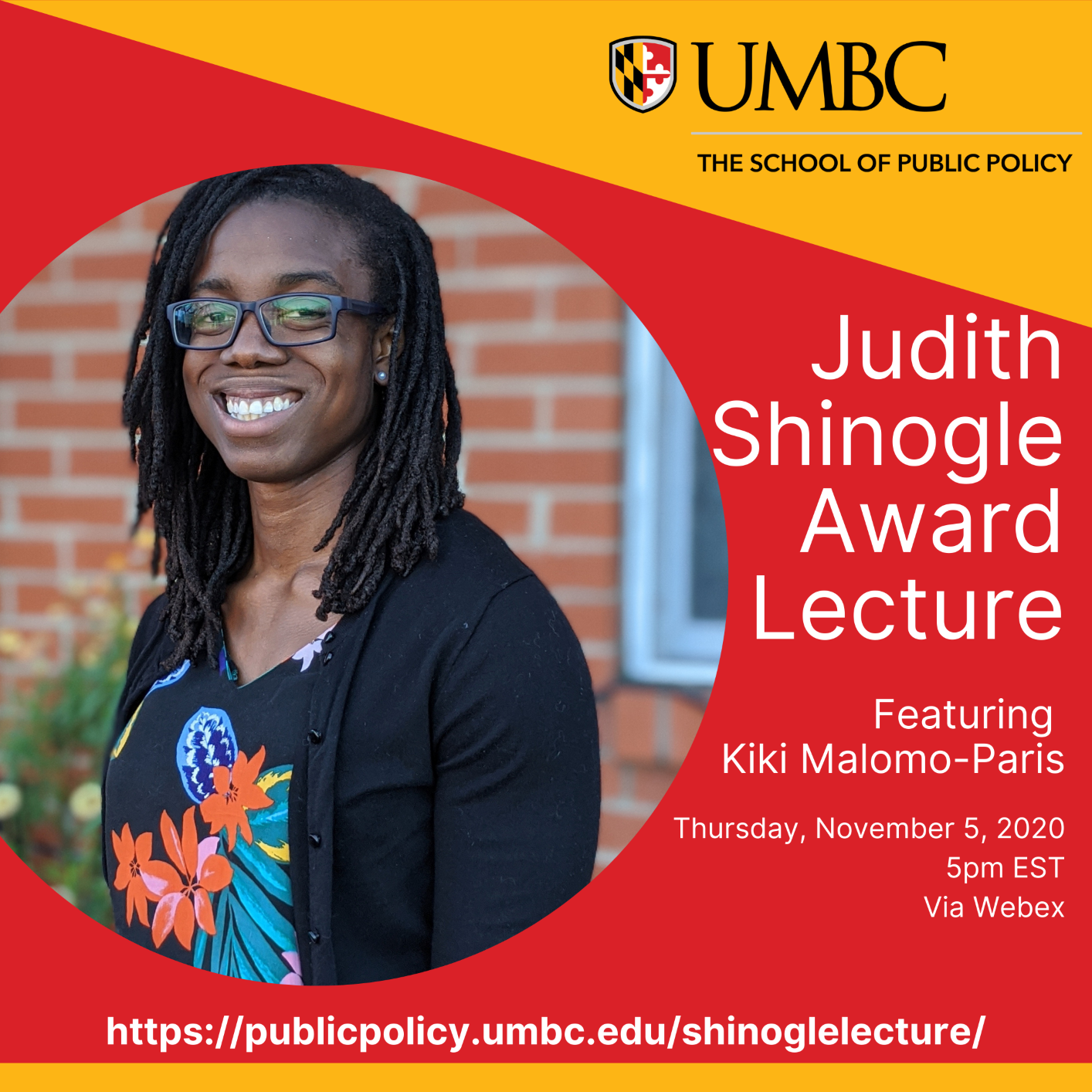 The School of Public Policy's annual Shinogle Award Lecture will be held Thursday, November 5th at 5pm, via Webex.