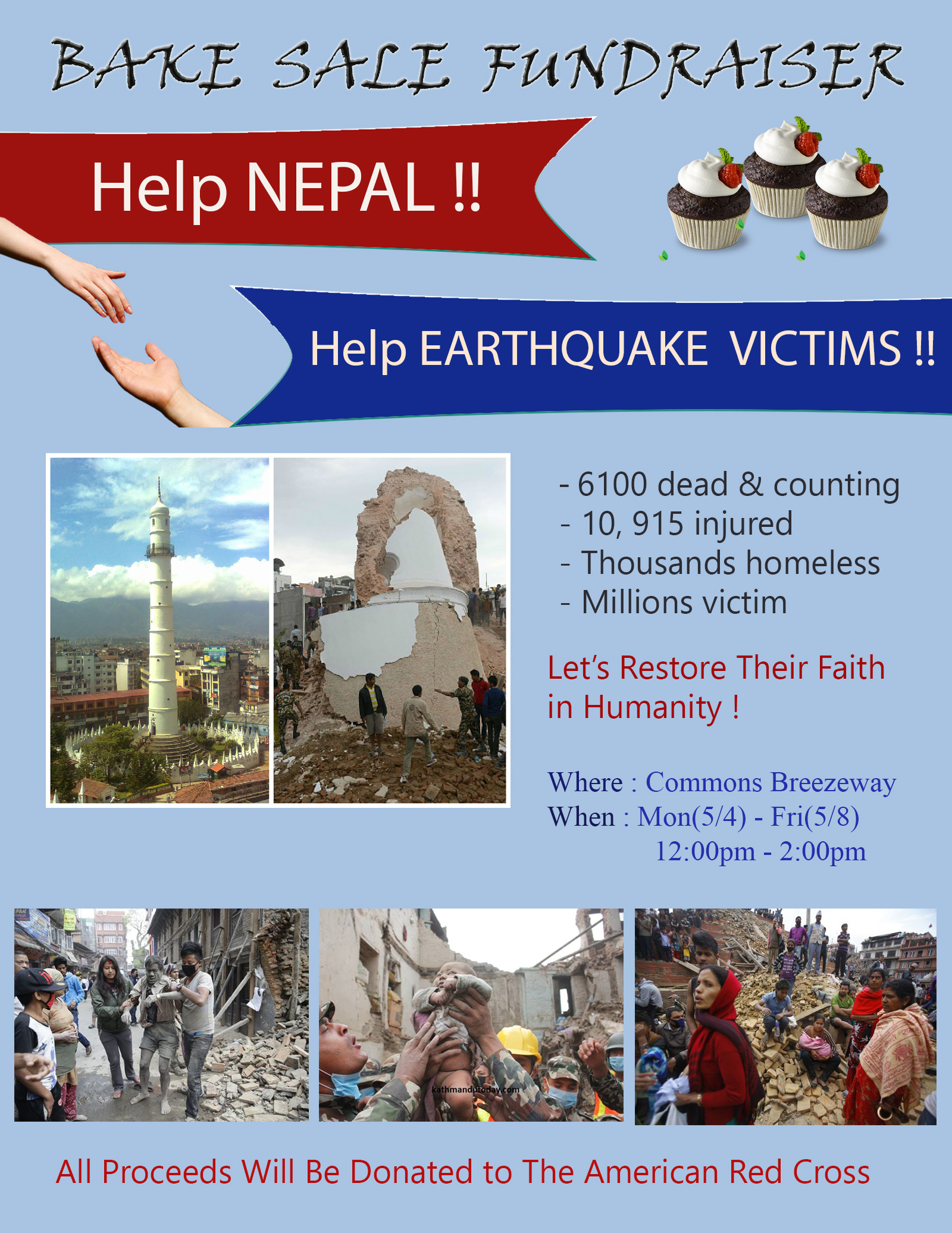 Brij Sah, a CWIT Affiliate (and other students) are doing a fund raiser next week in the breezeway for victims of the earthquake in Nepal. Come out and show your support! See the attached poster.