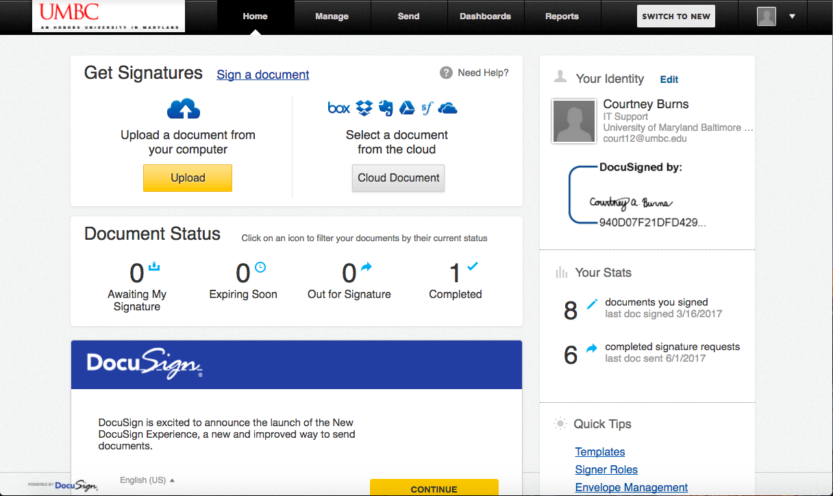 DocuSign has been working on transitioning from Classic Mode to their New Experience. On December 12th, DocuSign will officially transition to the New Experience only, getting rid of Classic Mode altogether. This should not affect any of our users, with the exception of those who prefer to switch to classic mode for specific aspects of document creation.