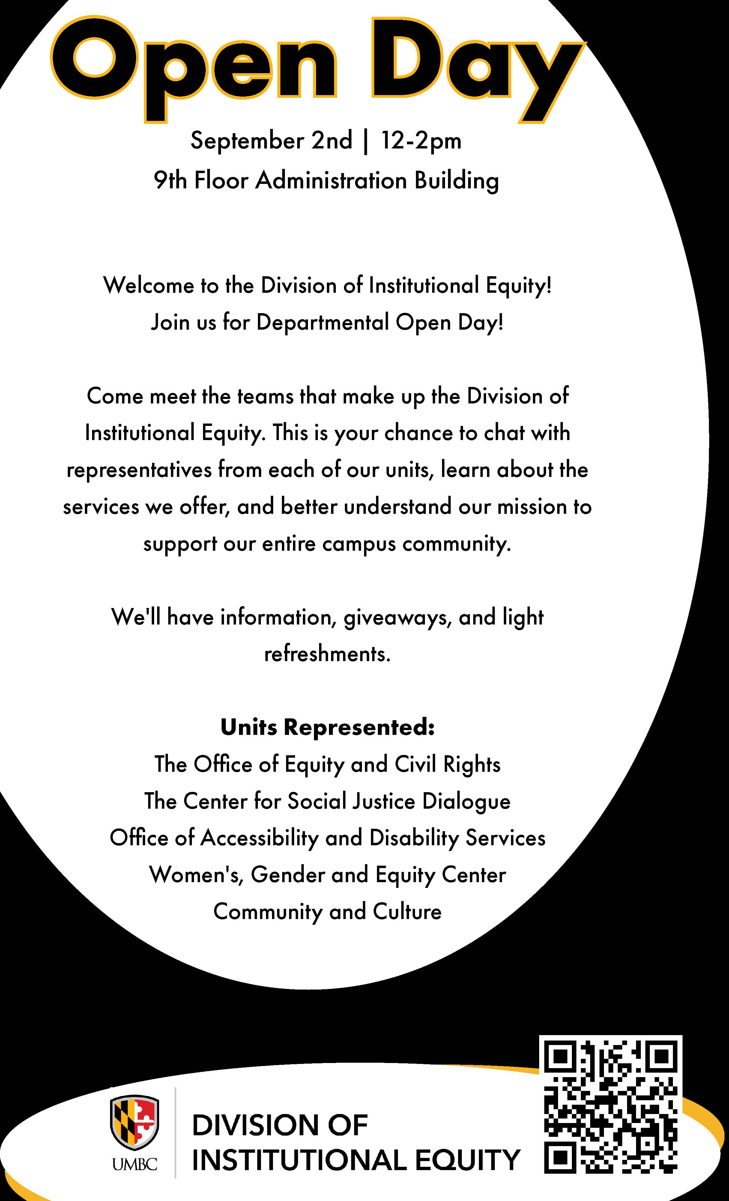 Come meet the teams that make up the Division of Institutional Equity (DOIE). This is your chance to chat with representatives from each of our units, learn about the services we offer, and better understand our mission to support our entire campus community.