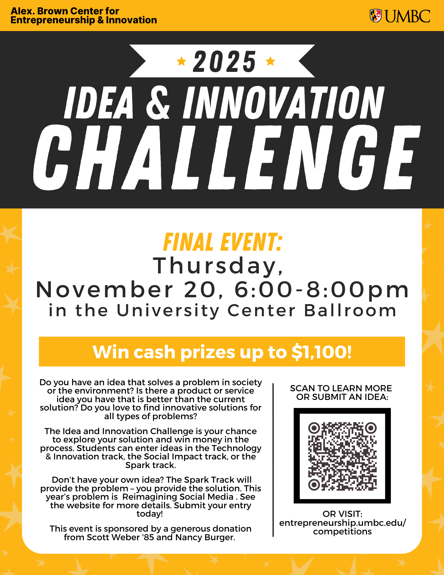The Idea and Innovation Challenge is a chance to solve a problem with YOUR Ideas and win up to $1,100! If you consider yourself a creative problem solver, have strong feelings about problems in your community, or are looking for opportunities to apply your mindset and skill then this competition is for you!