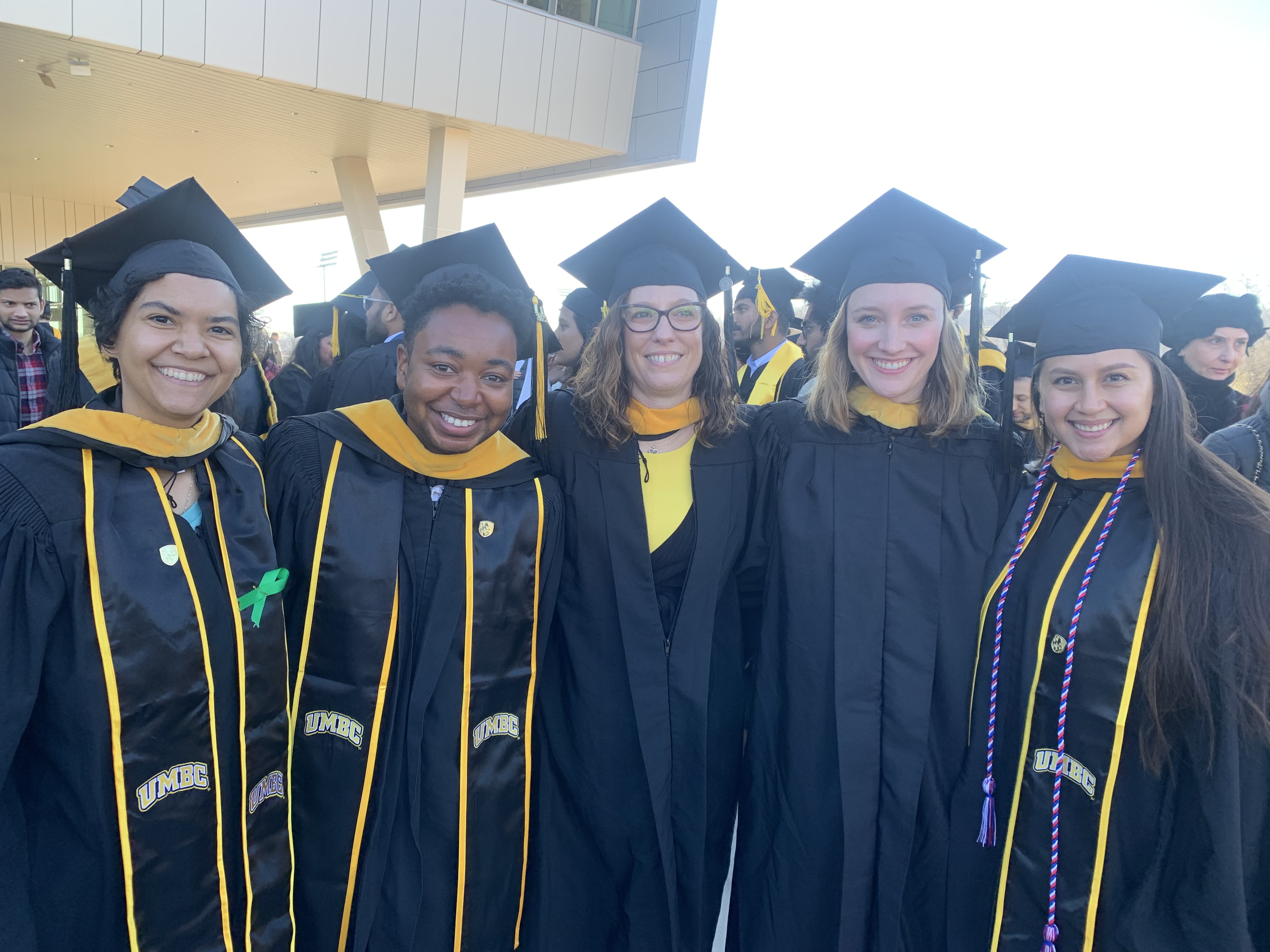 This morning was UMBC's graduate commencement ceremony! We had several students from our GES department in attendance, and we'd love to highlight them! The first photo features, from left to right: Selenea Gibson, Drew Powell, Rhonda Plofkin, Mackenzie Bodman, and Valerie Parson. The second photo features Mackenzie and Valerie along with Dr. Maggie Holland.