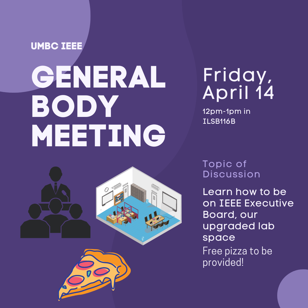We're holding our first spring GBM this Friday, April 14th in ILSB 116B from 12-1pm! We will go over three things: a fall recap of what we've done so far in 2022-2023, opportunities to get involved with the E-Board for the upcoming 2023-2024 academic year, and details about the opening of our upgraded lab!