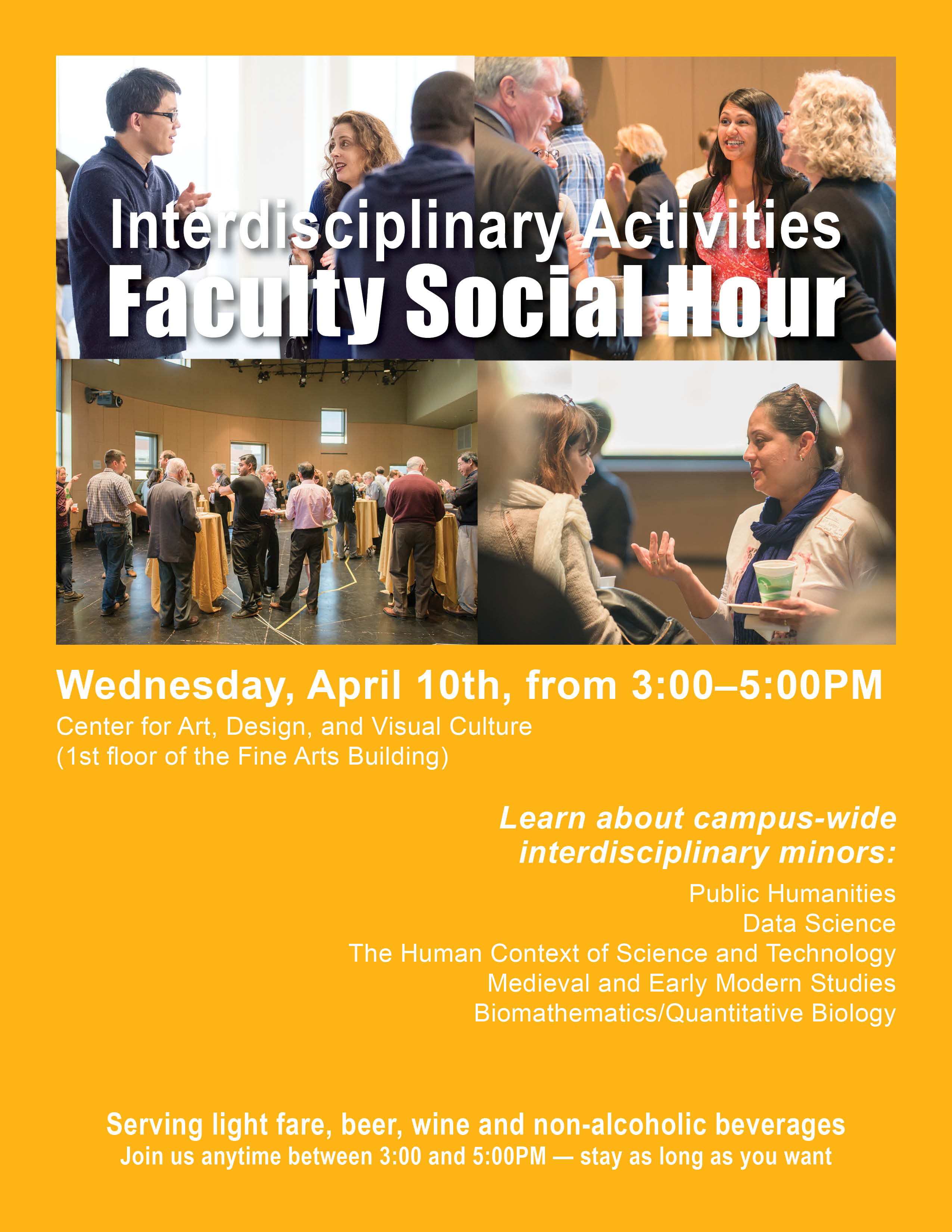Please join us TOMORROW for the Interdisciplinary Activities Faculty Social Hour, 3-5pm, CADVC, FA 1st floor. Come when you can, and stay as long as you can.