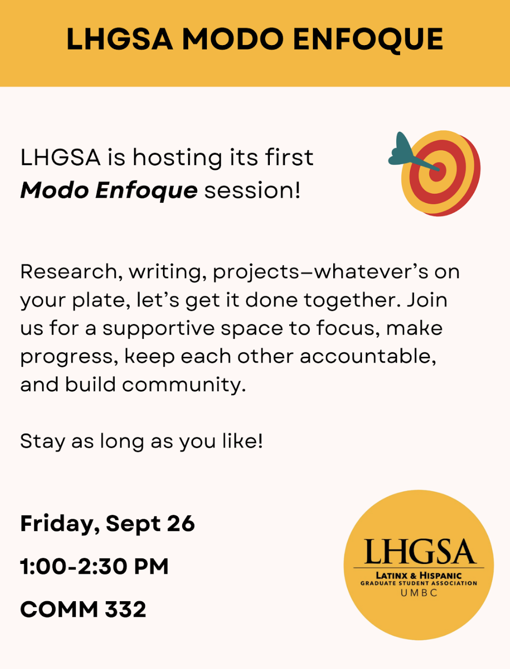 Hi Everyone! As we are in the midst of the fall semester, take a moment to study with community and friends with LHGSA TOMORROW, Friday, Sept 26th from 1-2:30PM. Feel free to stop by anytime and study for however long you like! Location is Commons 332. See the flyer attached below!