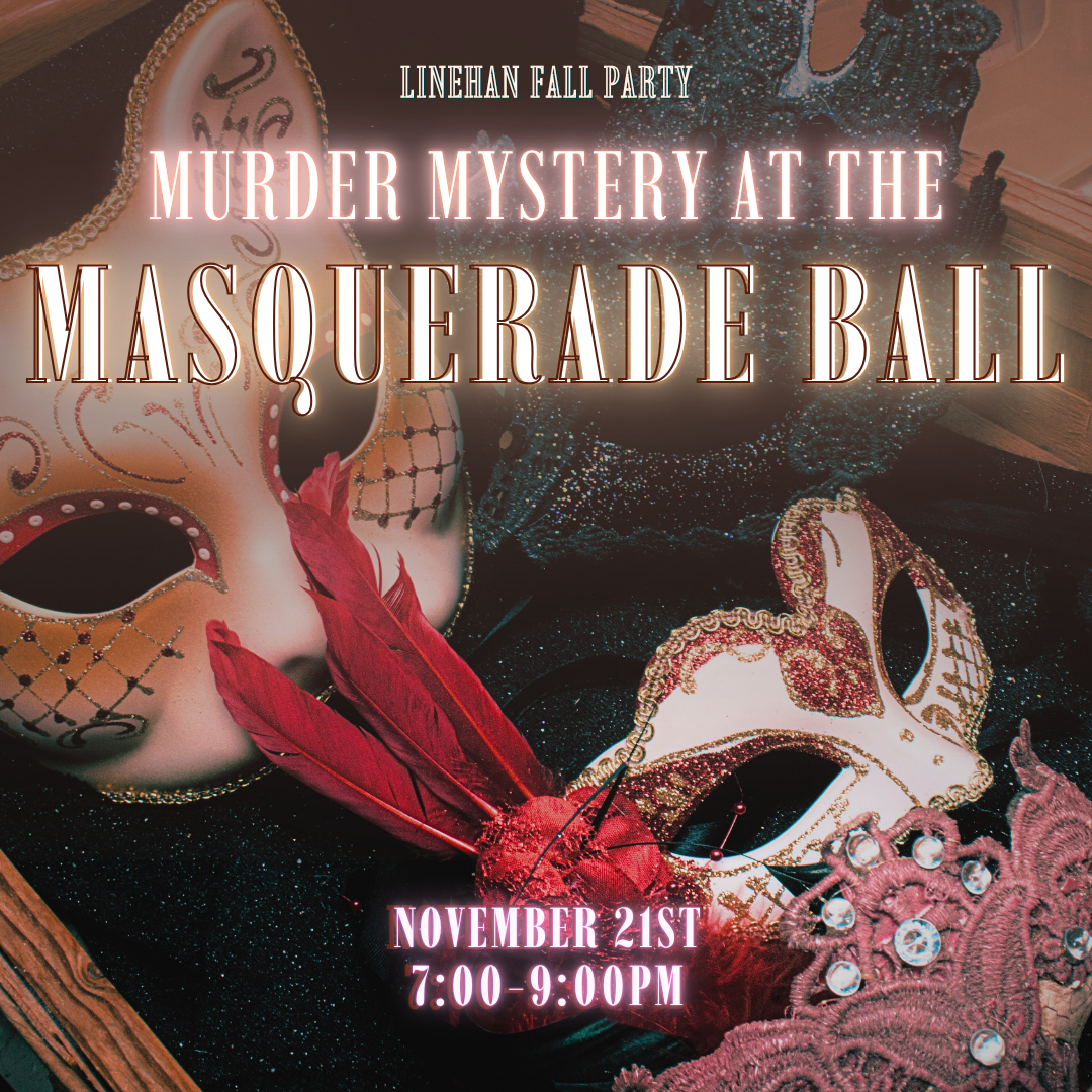 Linehan Scholars, save the date for our annual fall party on November 21st from 7:00-9:00 PM. This year's theme is: Murder Mystery at the Masquerade Ball. Registration form to come.