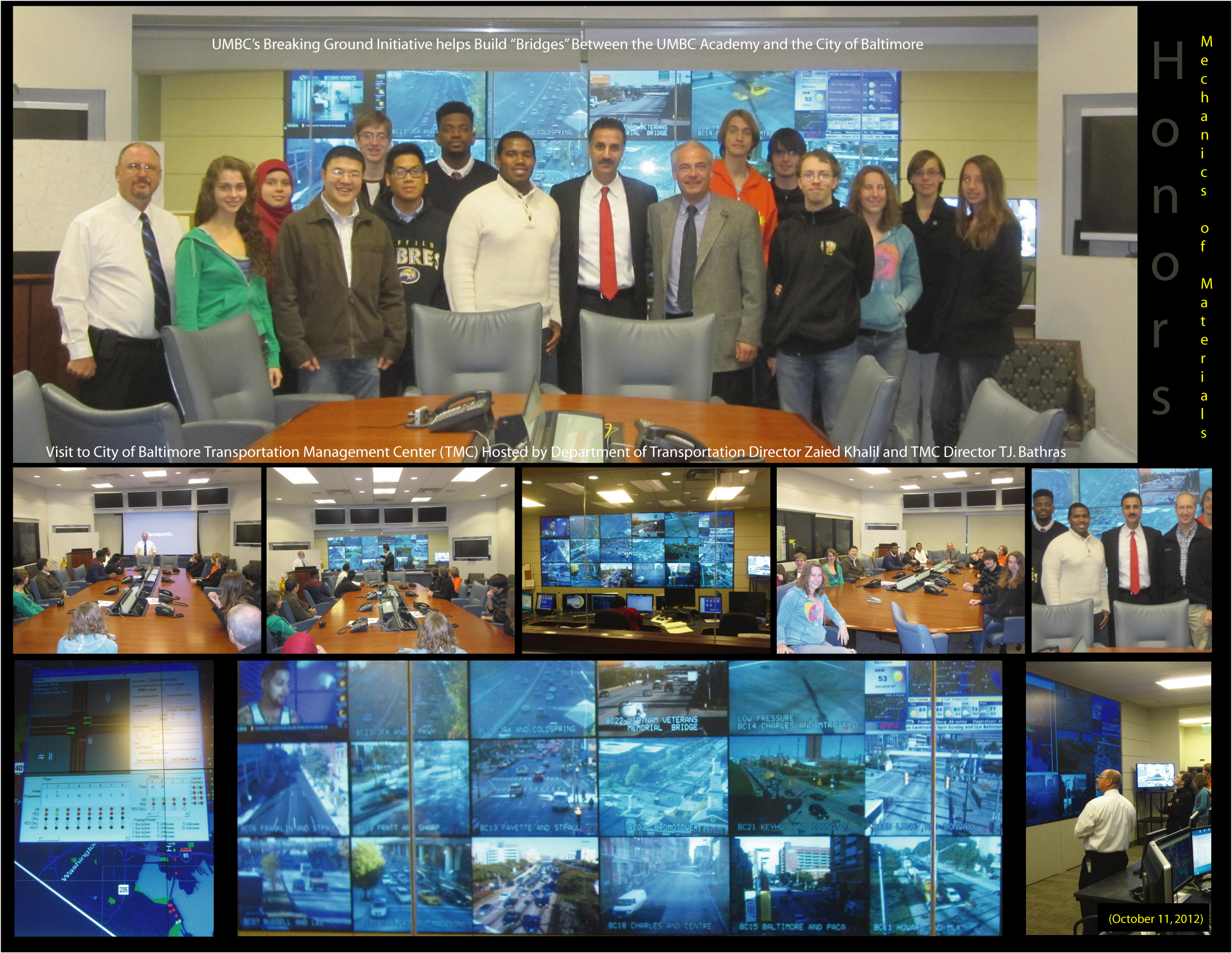 Dr. Panos Charalambides and his ENME220H students visited the Baltimore Traffic Management Center to better understand the process of traffic control in Baltimore City. The visit was part of his Breaking Ground initiative to expand students' understanding of the role of engineers in the surrounding community. One student project is focused on the redesign of a problematic intersection.