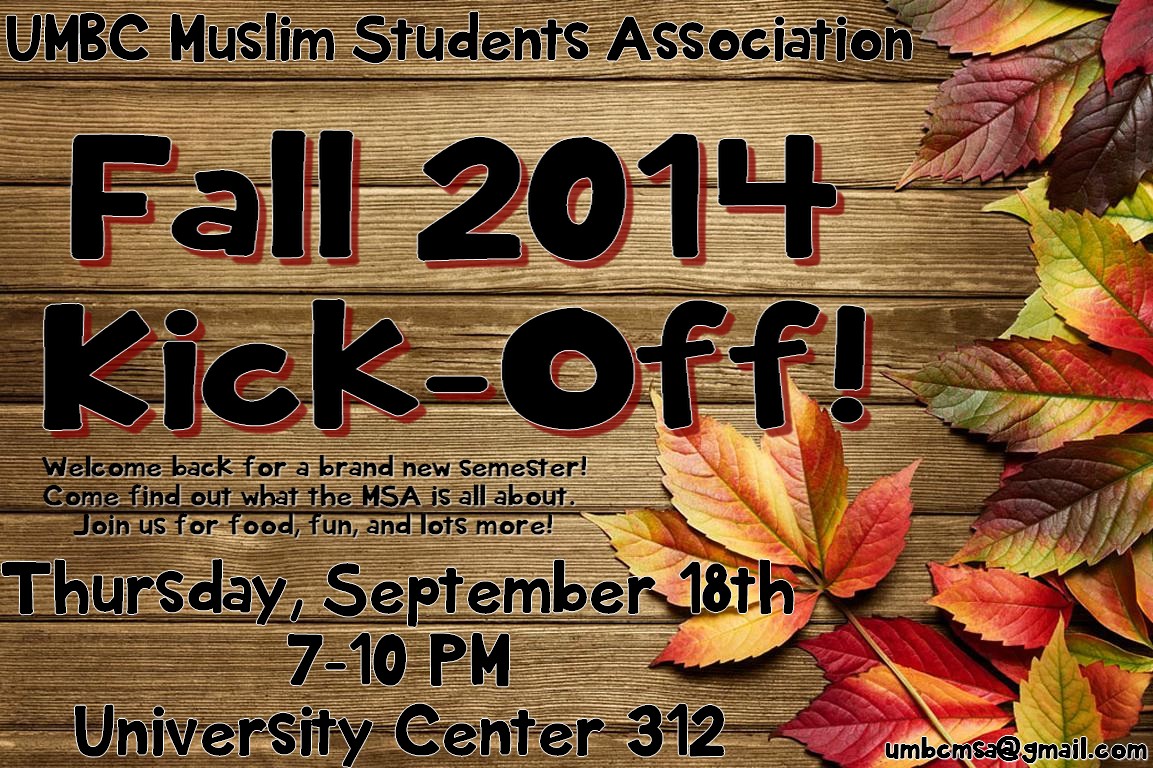 Once again, the MSA Cabinet welcomes you back to UMBC! We pray for a successful semester in sha Allah, and are excited to share what we have planned for you!
