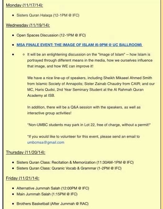 Please join us this coming Wednesday, November 19th in the University Ballroom from 6-9 PM in sha Allah!