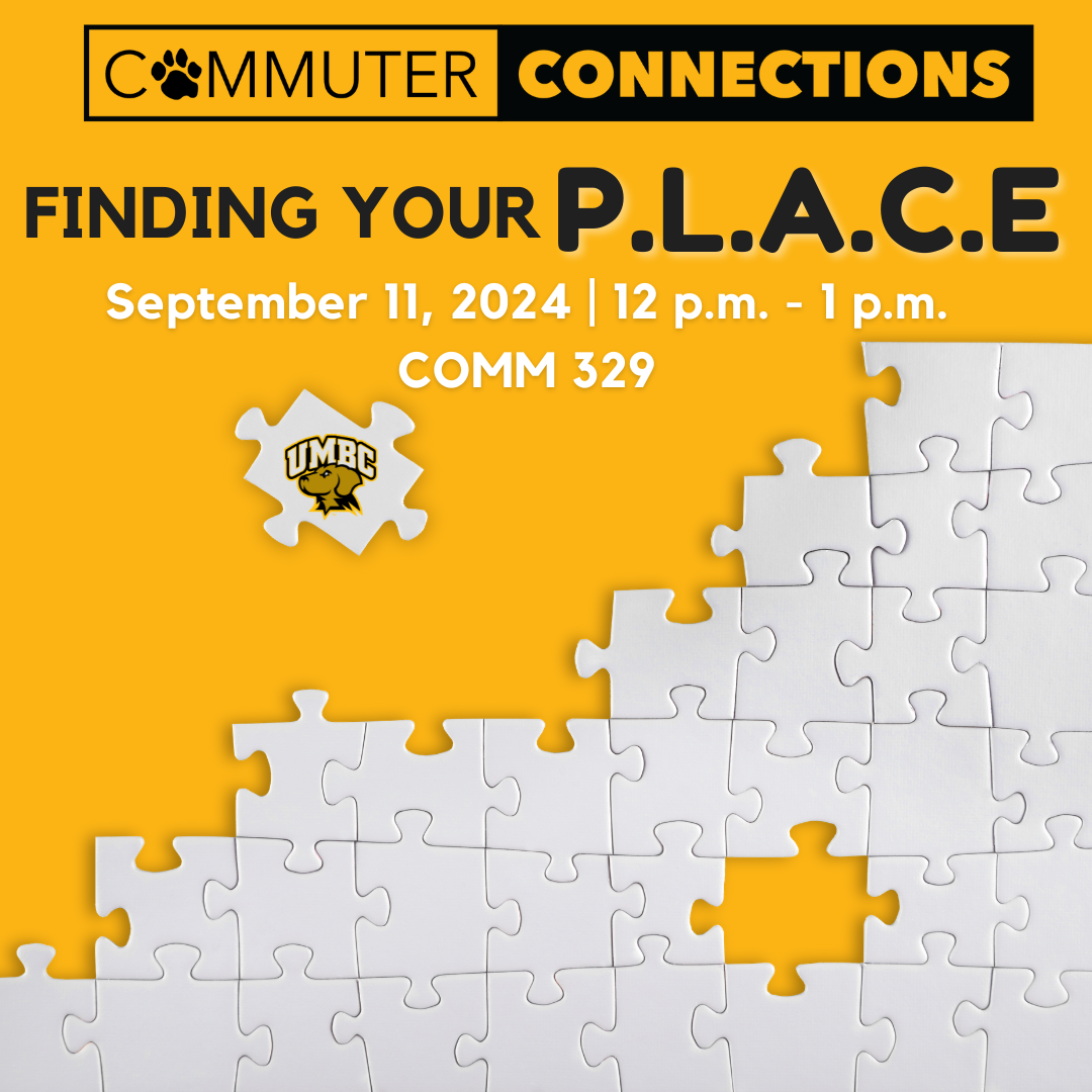 Are you new and unsure on how to get involved? Do you want to find your place on campus? Whether you're new to UMBC or returning and just looking to get more involved, this event is for you! Finding Your P.L.A.C.E. is an interactive and informative event about how to find or create your place here at UMBC!