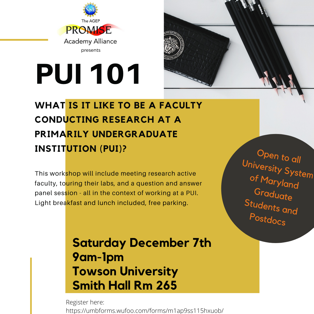 What is like to be a faculty conducting research on a Primarily Undergraduate Institution (PUI)? Towson University and the PROMISE Academy invite you to find out in this event.