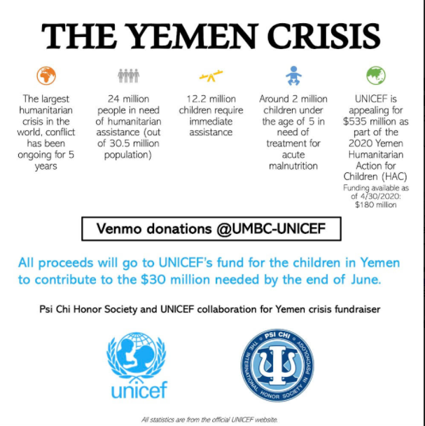 We hope you are having a restful and relaxing summer! UMBC’s UNICEF Club recently reached out to us to see if we wanted to collaborate with them to support the children impacted by the crisis in Yemen, the world’s worst humanitarian crisis. We said yes, of course! Their goal is to reach $2000 and so far, they have raised over $1100! I think we can help them reach their goal and support this incredibly worthy cause. They will also be giving away a raffle basket filled with goodies (UNICEF t-shirt, pins, stickers, candles, etc.). The more you donate, the higher your chance of winning! Donations are due June 29th.