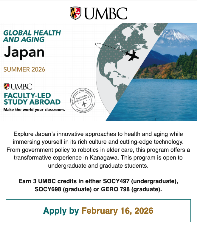 Study abroad this summer with Dr. Yamashita! Public Health will allow this course to count as a Public Health elective. Contact the Center for Global Engagement for more information, or see the program page and application.