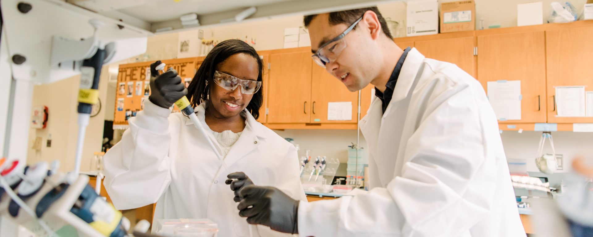 Banner image: Alexis Waller ’18 and her mentor, Pengfei Ding, at work in the lab. Photo by Marlayna Demond ’11 for UMBC.