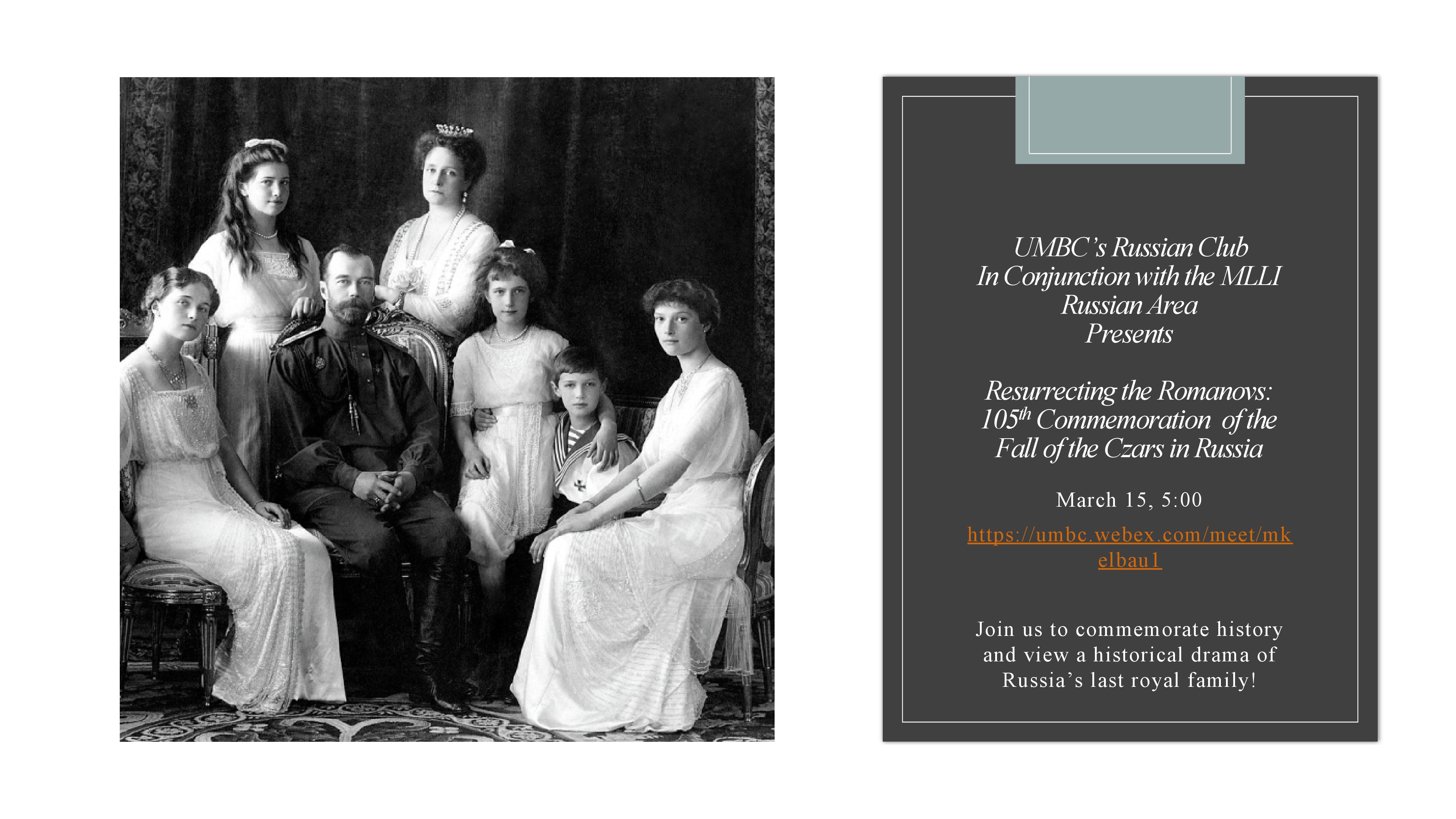 Come join us to commemorate the 105th anniversary of the fall of the czars!