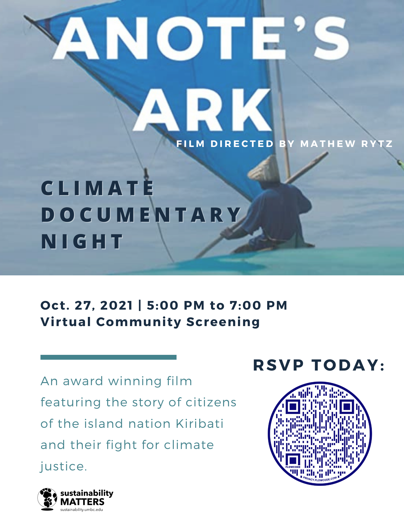 The Office of Sustainability is hosting a community screening of the Sundance-nominated climate documentary “Anote’s Ark,” directed by Matthieu Rytz. It focuses on an island nation called Kiribati in the South Pacific struggling with rising sea levels.