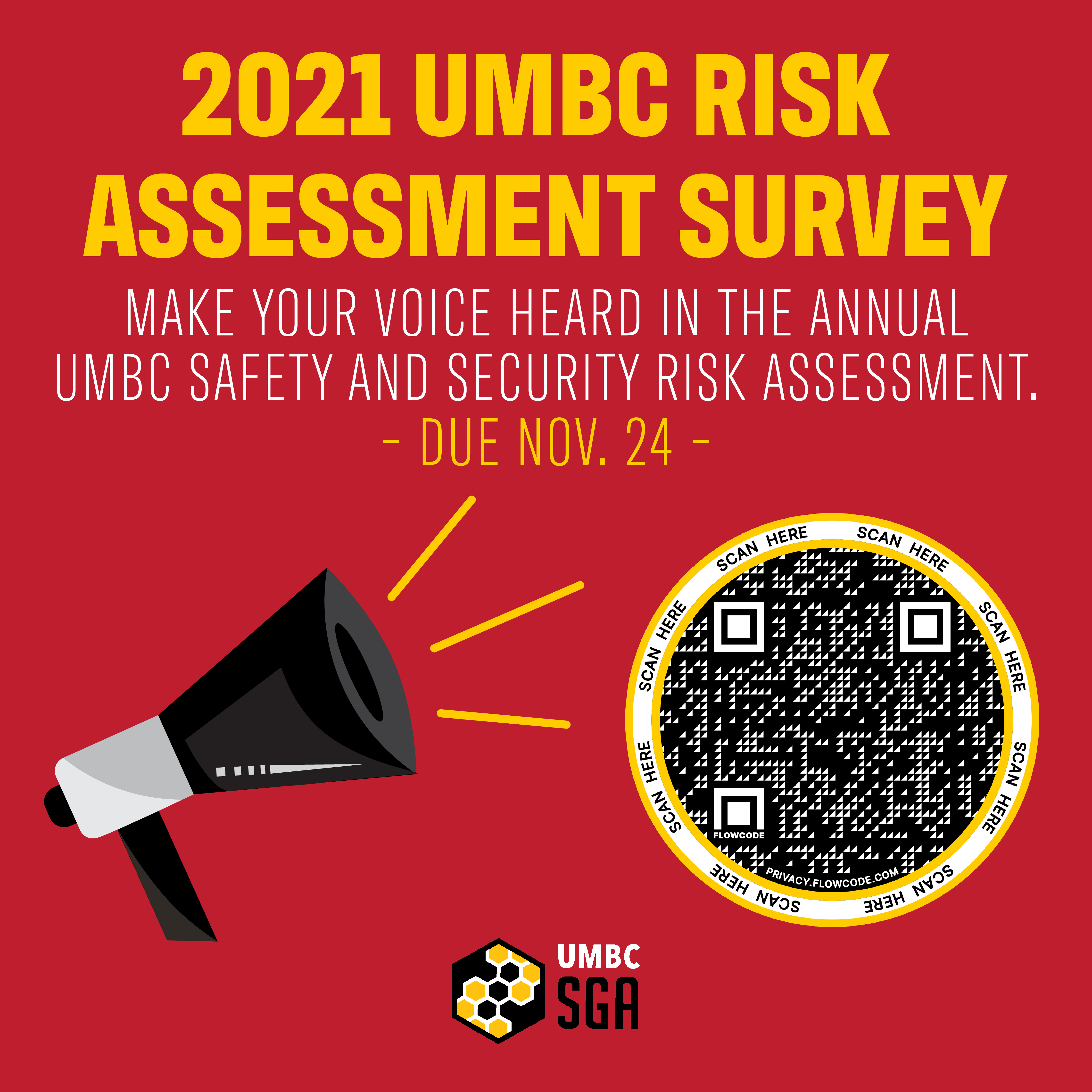 Please complete this online survey to help support the work of the UMBC Police Department and the Division of Student Affairs as they collect student opinions on the first-ever UMBC Community Risk Survey. Findings from this survey will be used to inform training for UMBC's community and plans for handling emergencies as they arise.