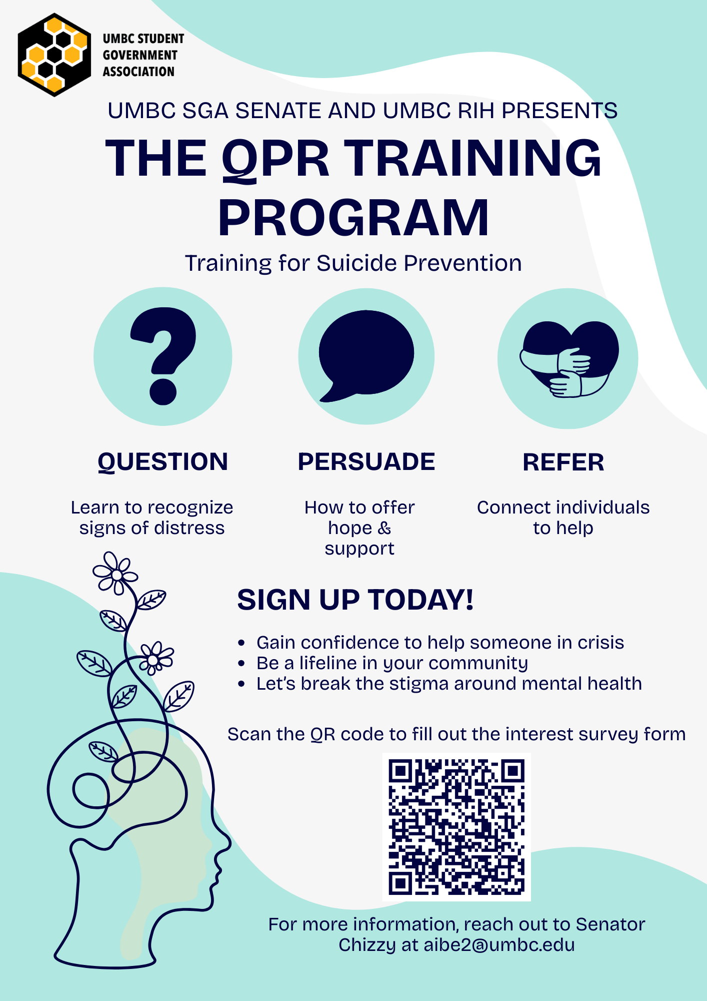 UMBC SGA and UMBC Retrievers Integrated Health (RIH) are proud to offer QPR Training — Question, Persuade, and Refer.