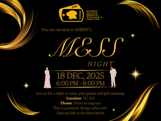 Join us for a night to relax, play games, and exchange gifts Location: UC 312 Date: Thursday, December 18th, 2025. Time: 6 pm - 8 pm Theme: Dress to impress This is a potluck. Bring a plus...
