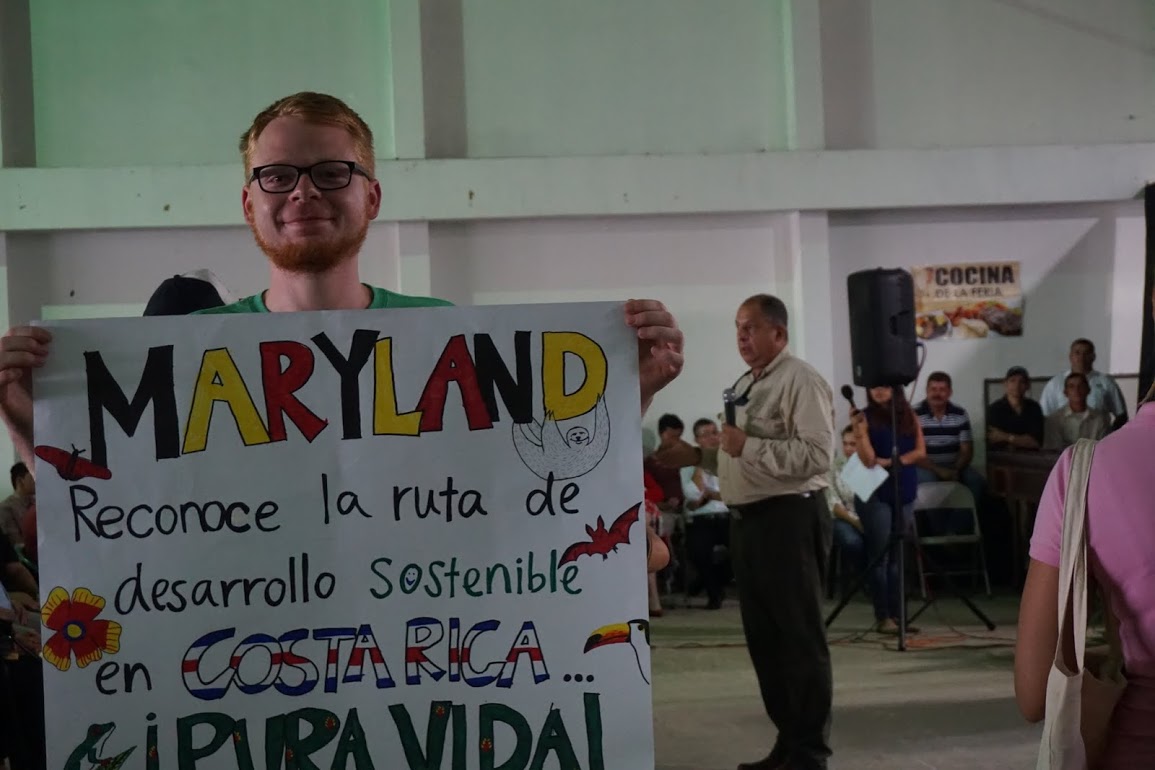 The students made a poster to carry at a local town hall meeting in Monteverde, where the President, Dr. Presidente Luis Guillermo Solis, came for the debate about paving the main road up to the town. After the town hall meeting, the students had the rare opportunity to meet with Dr. Presidente Solis!