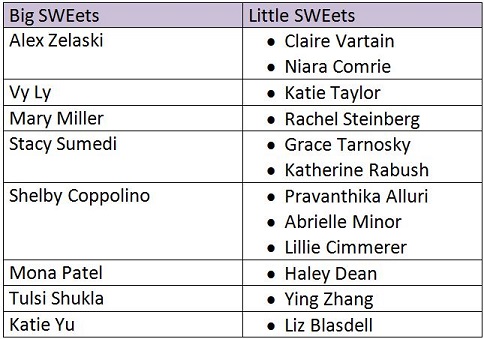 If you didn't get to meet your Big/Little SWEet at the GBM today, shoot them an email and set up a time to hang out! Check out the News section on our myumbc SWE page for details on our Big/Little SWEet Savenger Hunt Competition so you can become the best Big/Little SWEet pairing at UMBC!