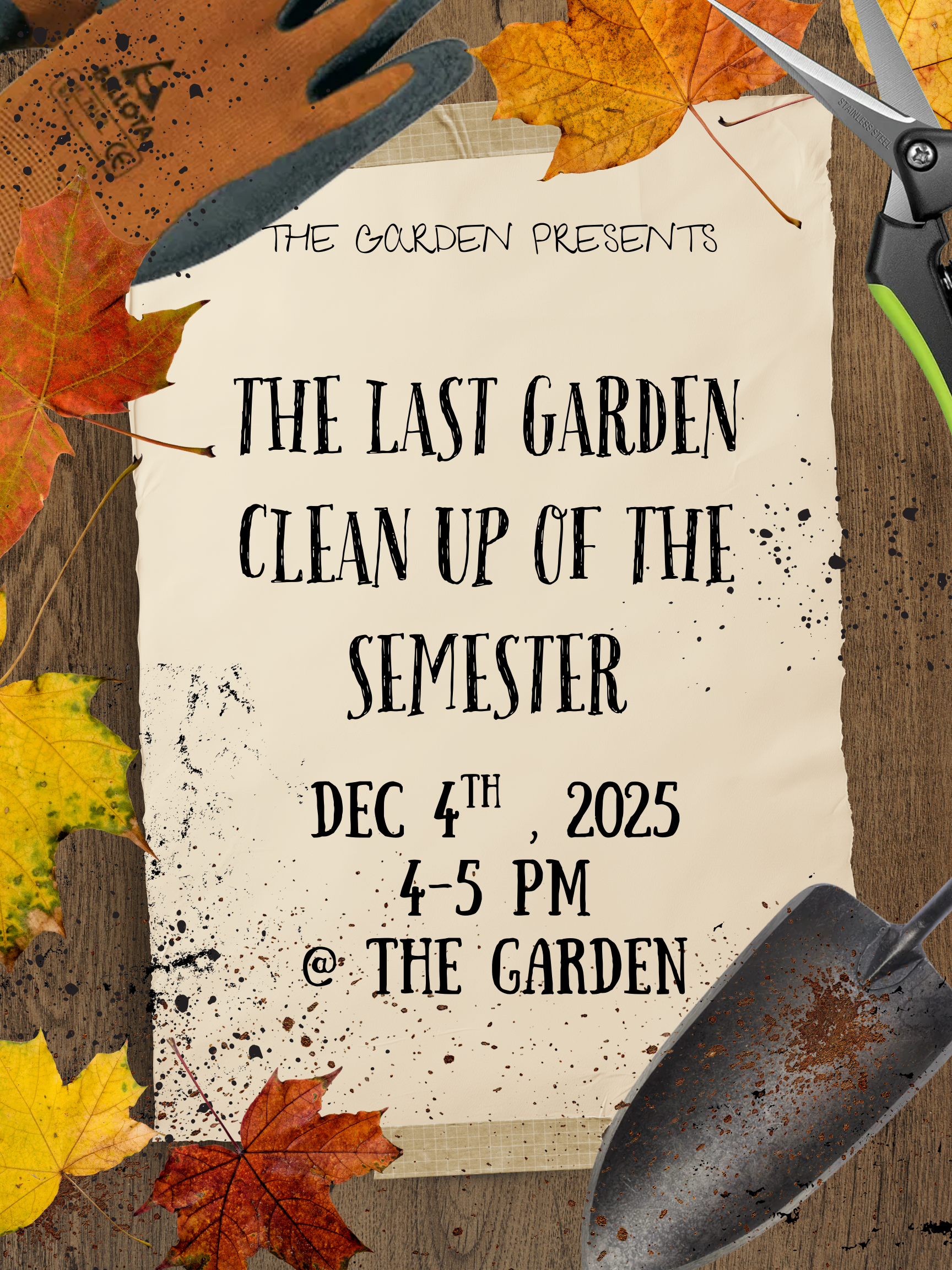 We are happy to announce we will be having our last garden clean up to wrap up the semester and welcome the new season! We will be hosting the garden clean up December 4th, 2025!