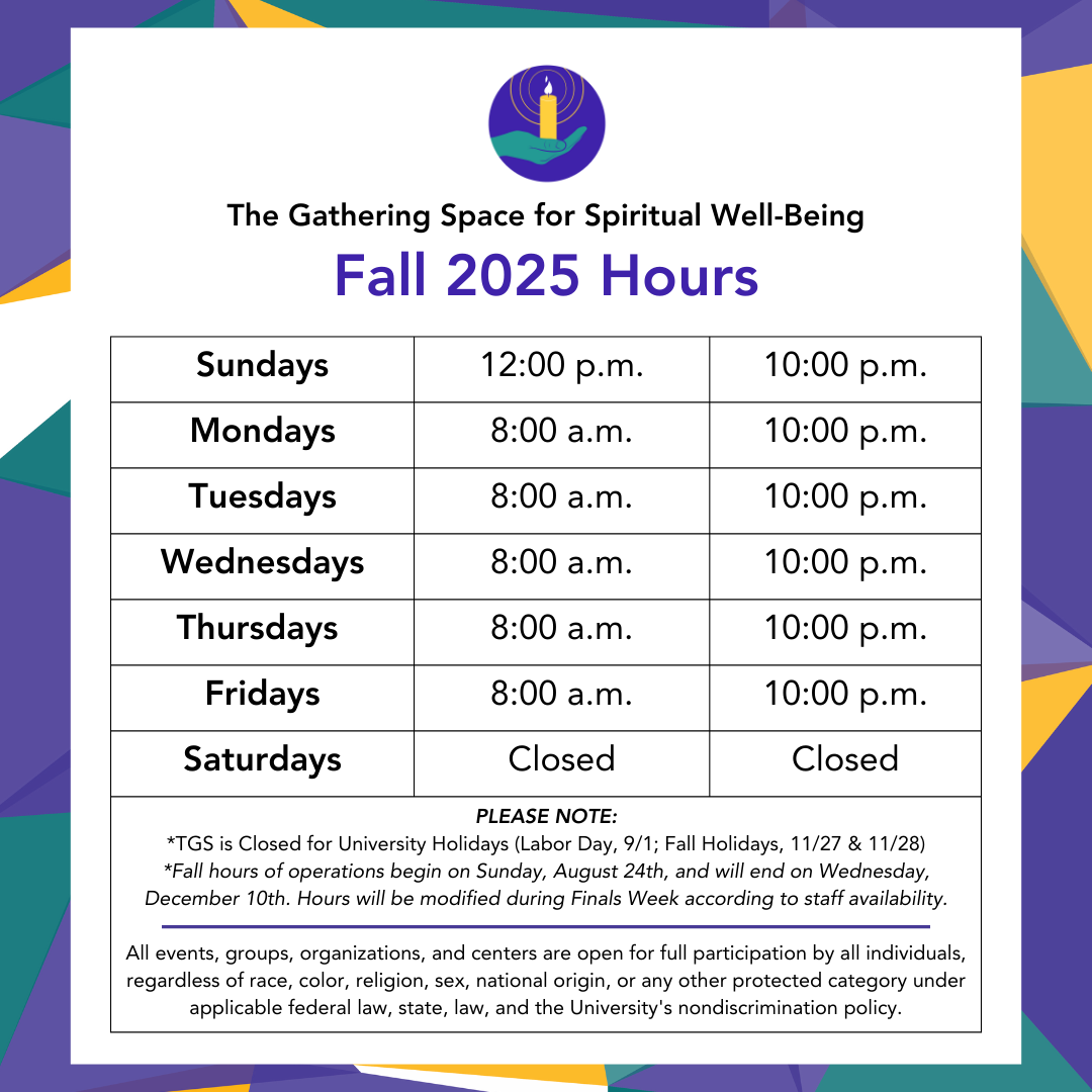 The Gathering Space is the hub for religious, secular, and spirituality identities (RSSI) at UMBC. This space serves as home base for 28+ religious and belief student organizations and 20+ Religious Council members, interesting dialogue and interfaith work, and as a lounge and hangout space for campus community members. A core part of Student Belonging at UMBC, The Gathering Space was created by UMBC community members who saw the need to honor religious and spiritual diversity as a core part of holistic well-being and success.