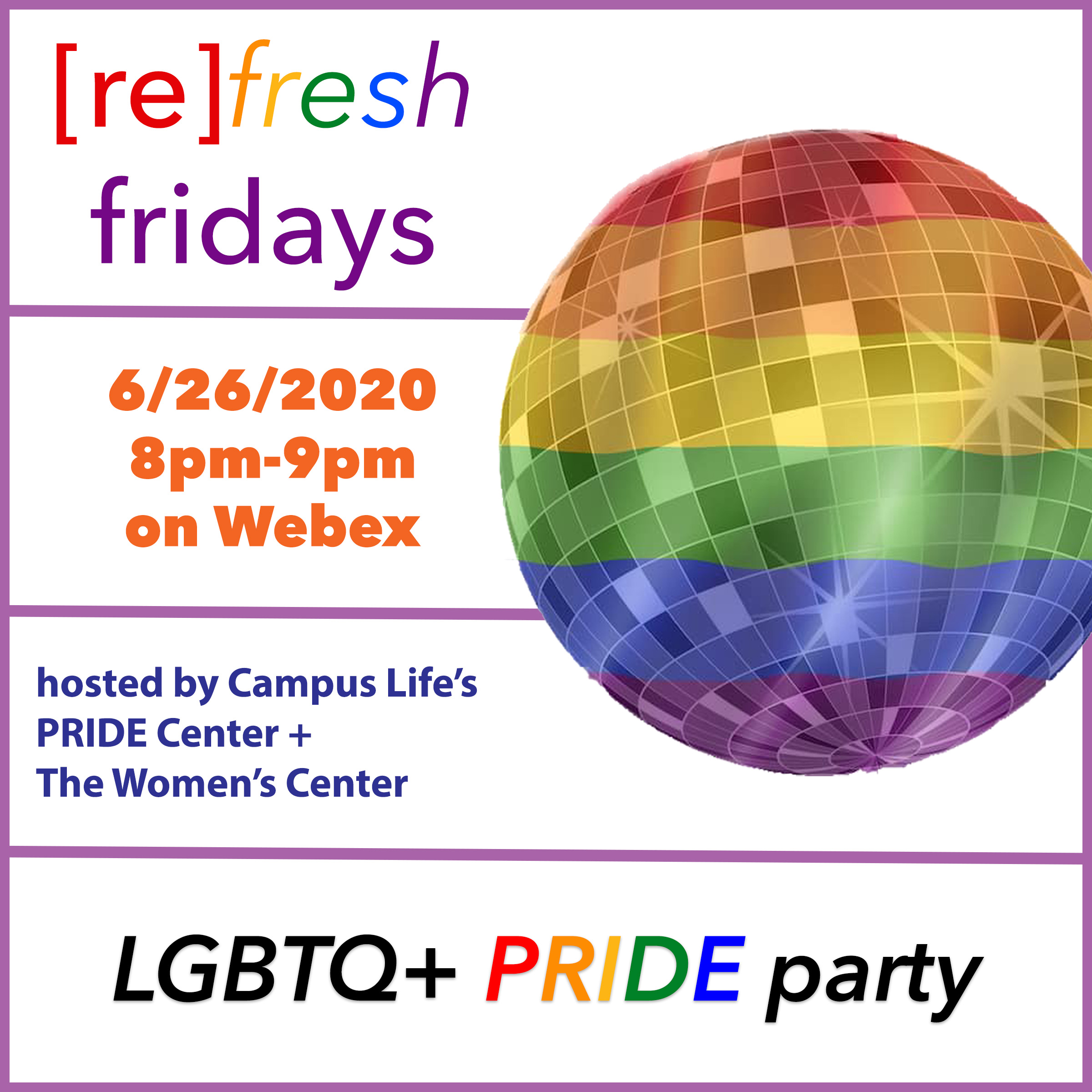 But fret not, The PRIDE Center and The Women’s Center invite you to celebrate LGBTQ+ PRIDE with us on Friday, June 26th at 8PM with our very own virtual PRIDE celebration.