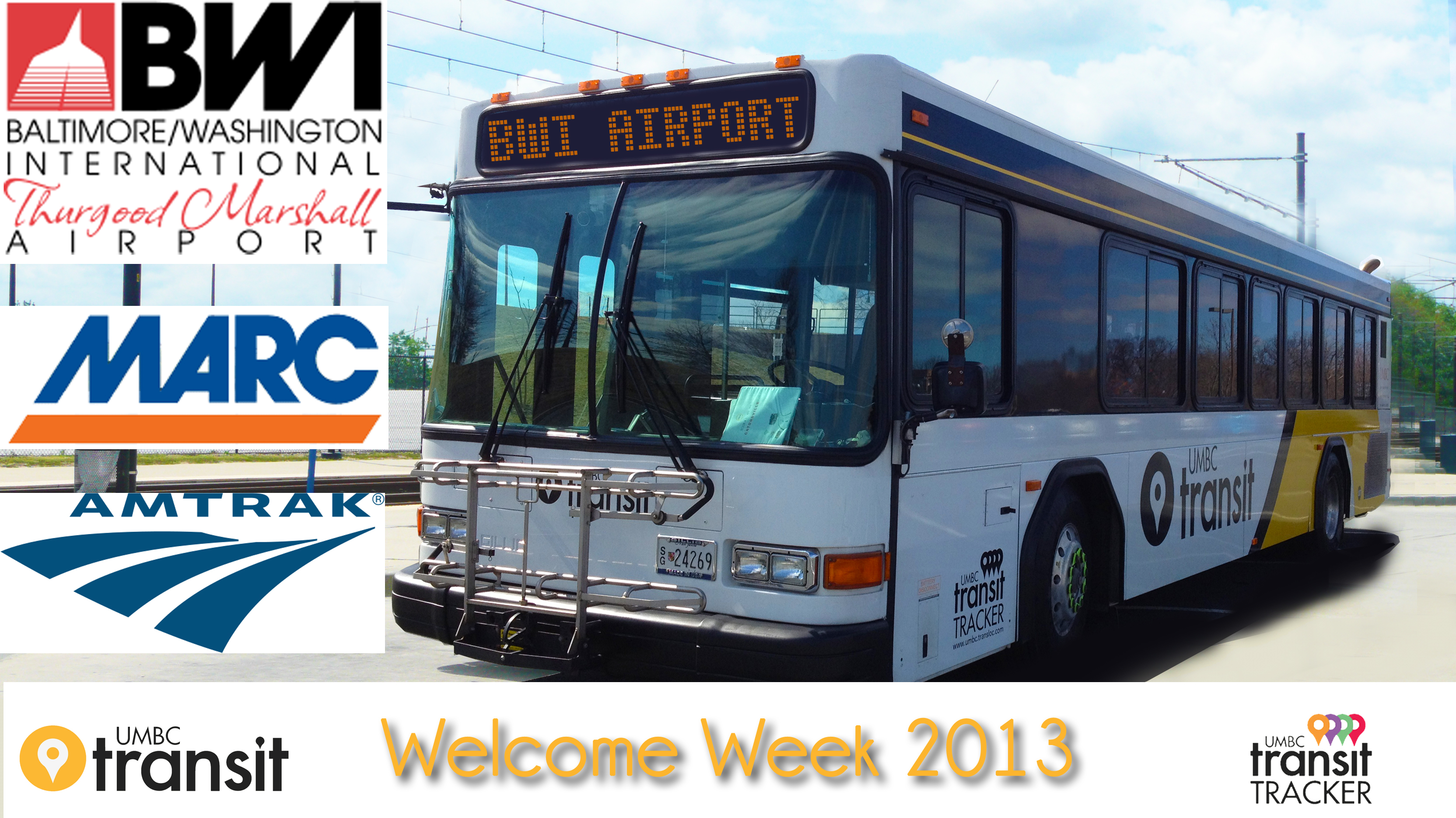 UMBC Transit will be providing shuttle services to transport passengers from BWI Airport and BWI Amtrak/MARC Train Station on Saturday, August 24, 2013 from - 8:00 am - 4:00 pm . Please bring your red UMBC ID card with you.