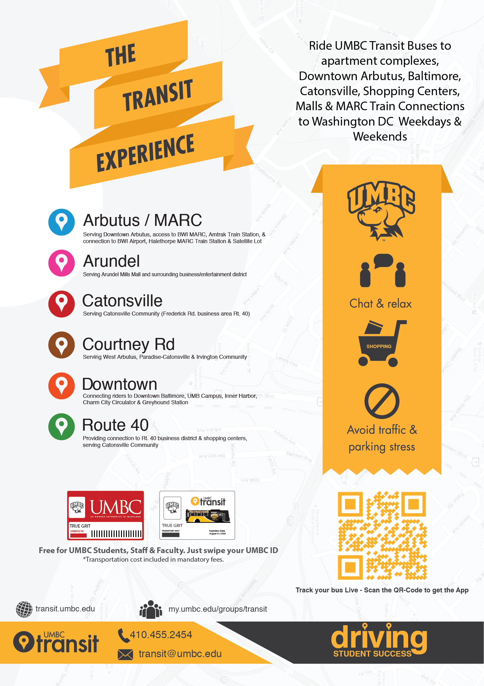With over 400,000 rides annually, UMBC Transit reflects the commitment of students,faculties, and staff to the efficient use of resources and environmental stewardship.