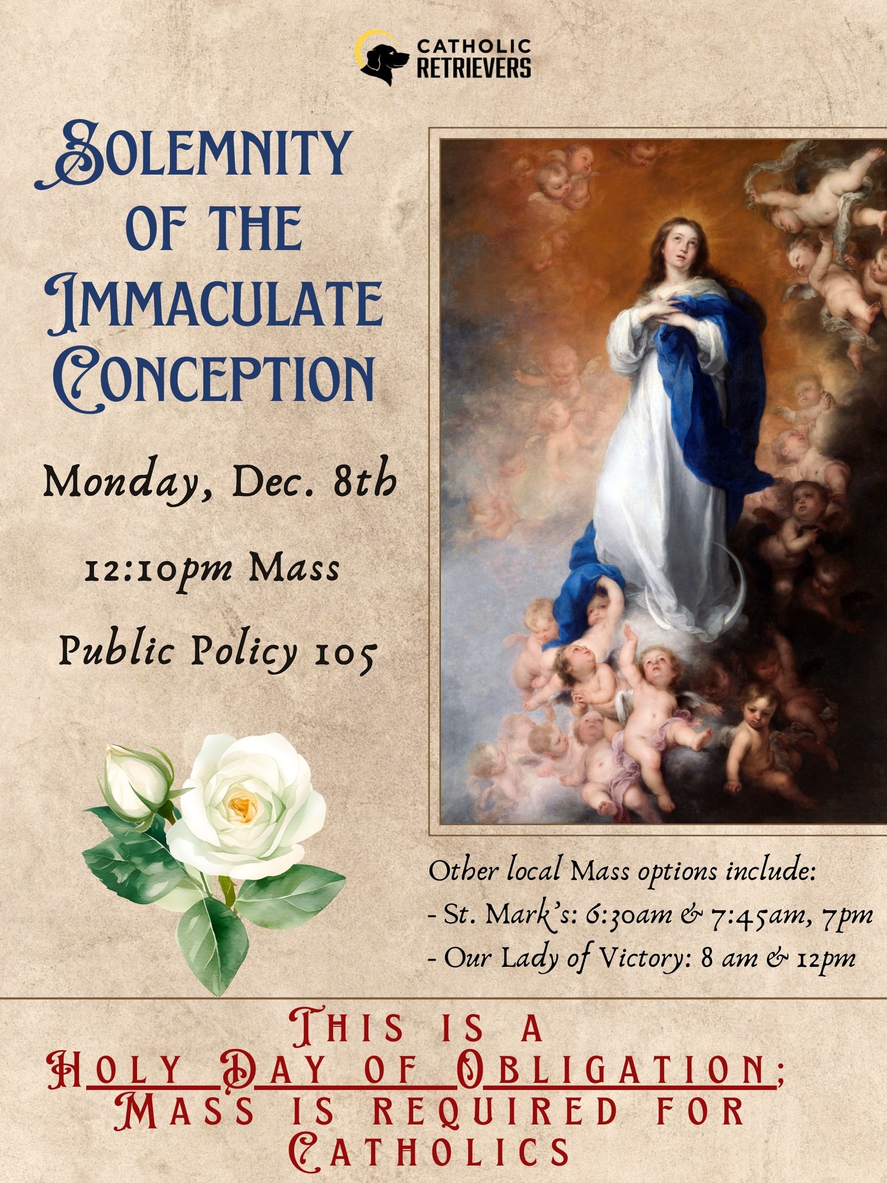 Join us at Mass on this Holy Day of Obligation: The Solemnity of the Immaculate Conception!