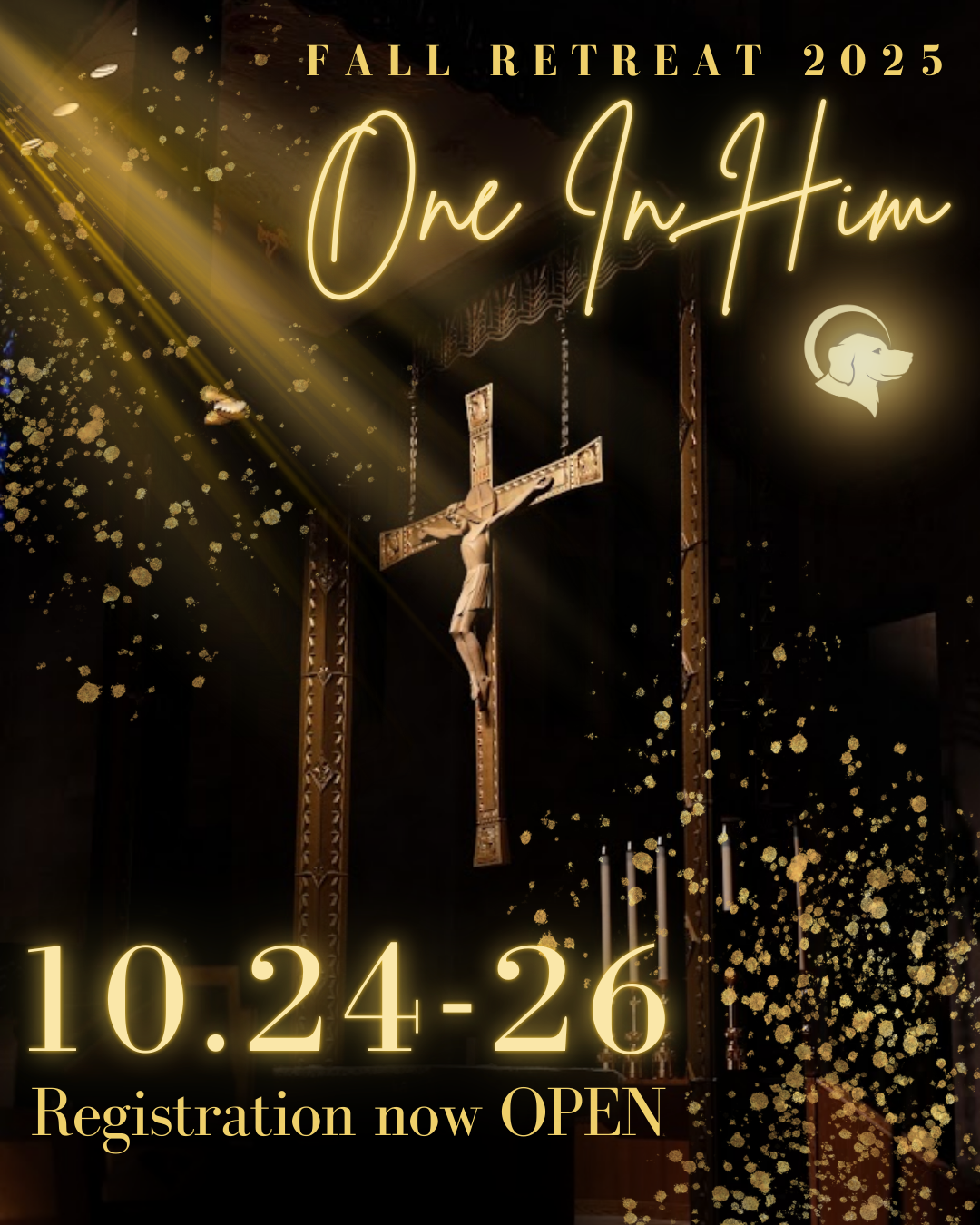Join us for our Fall Retreat! This is a time to step away from schoolwork and spend the weekend in prayer and fellowship! Retreat is a great way to grow in your faith and connect with the Catholic Retriever ministry!