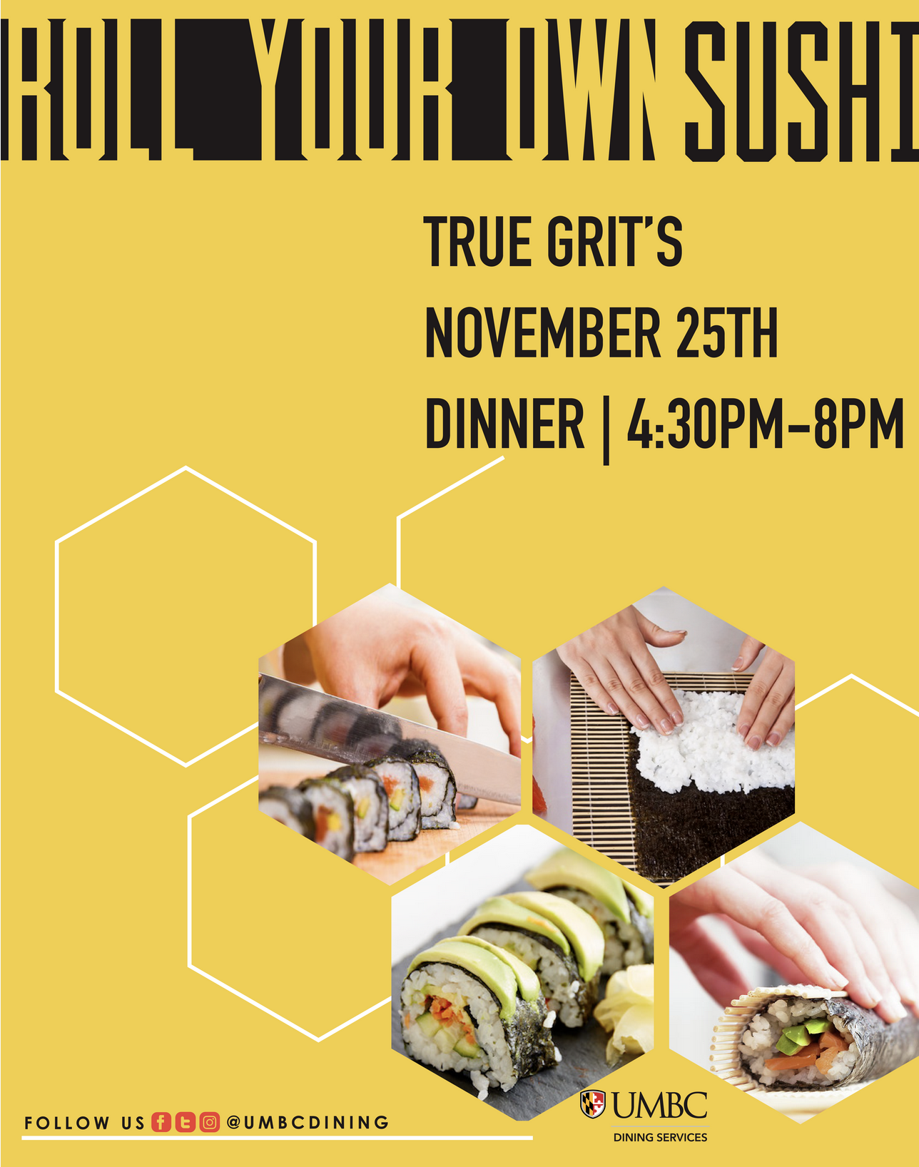 Join us tonight during dinner at True Grit's for Roll Your Own Sushi! Goon will be here from Hissho Sushi from 4:30pm-8pm to should you how to create your own!