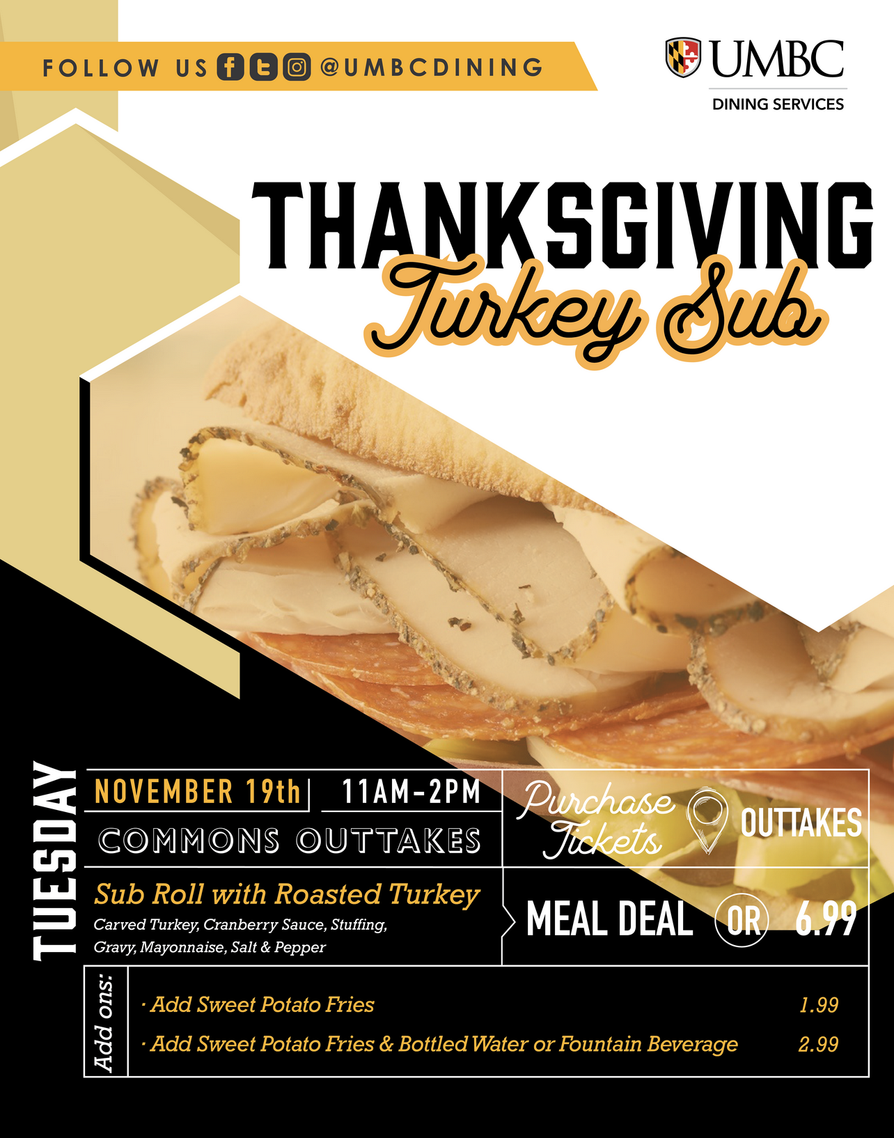 Celebrate Thanksgiving with us a little early tomorrow with our Thanksgiving Turkey Sub Pop-Up! Join us in the Commons across from Outtakes from 11am-2pm!