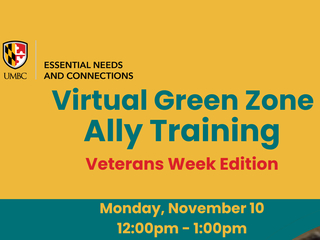 As part of UMBC's Veterans Week celebration, we invite faculty, staff, and students to participate in our Virtual Green Zone Ally Training — an engaging and informative session designed to deepen...