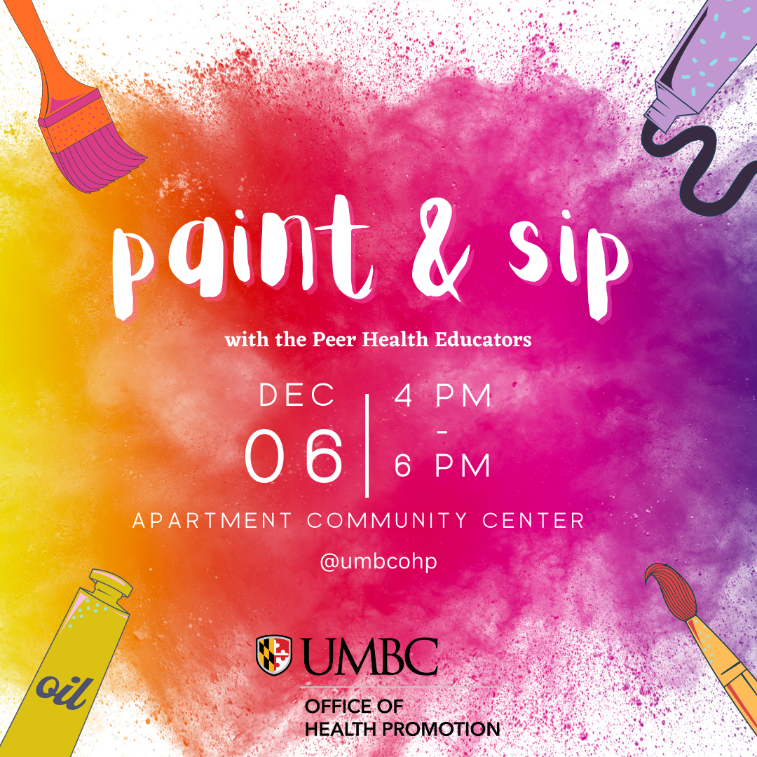 Join our Office of Health Promotion Peer Health Educators TODAY at the Apartment Community Center for a fun Paint & Sip session.