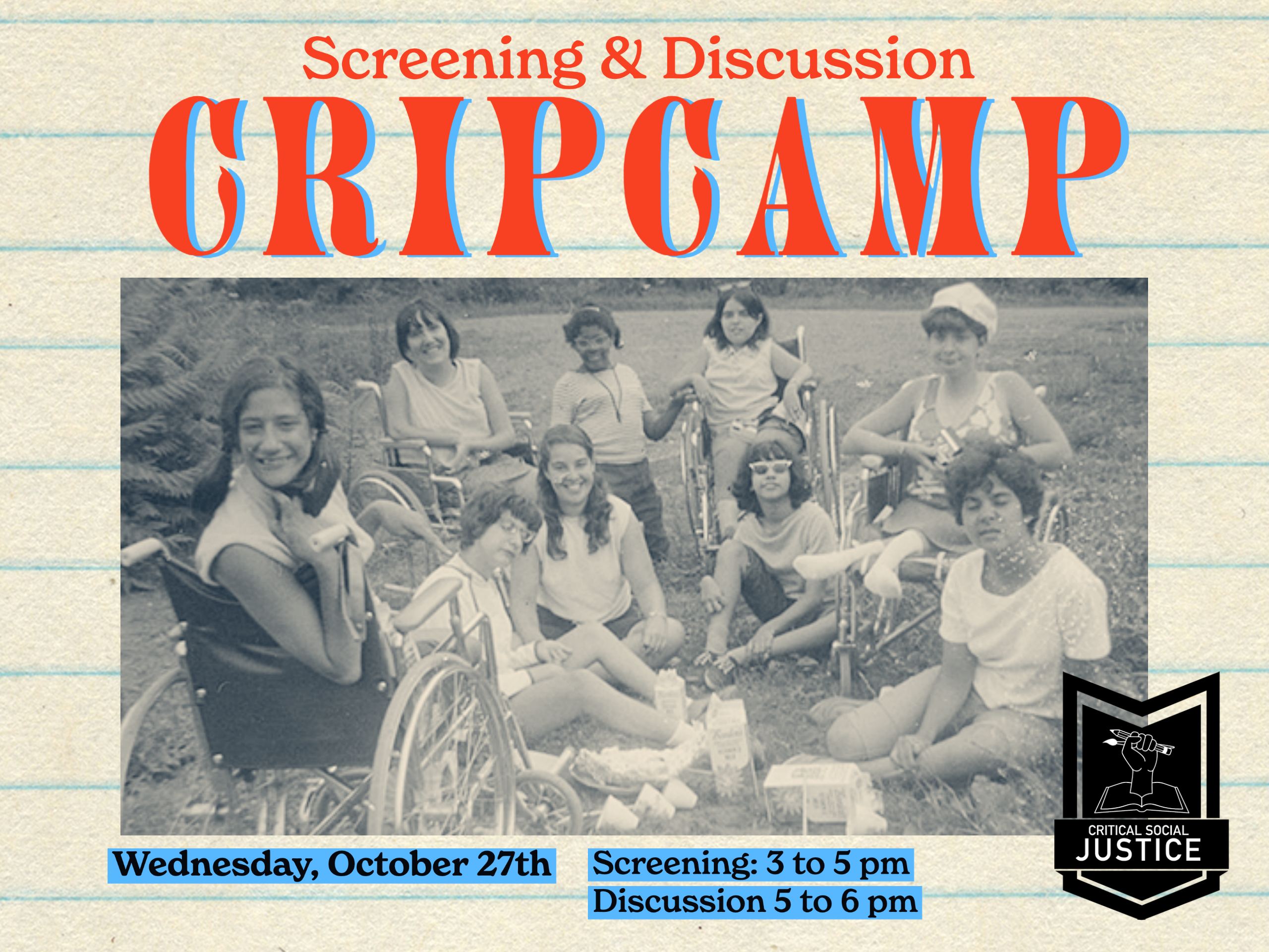 Join us to watch and discuss the 2020 Oscar-nominated documentary Crip Camp, which shares stories from Camp Jened, a summer camp for teens with disabilities and an incubator for the disability rights movement (see a summary of the film below).